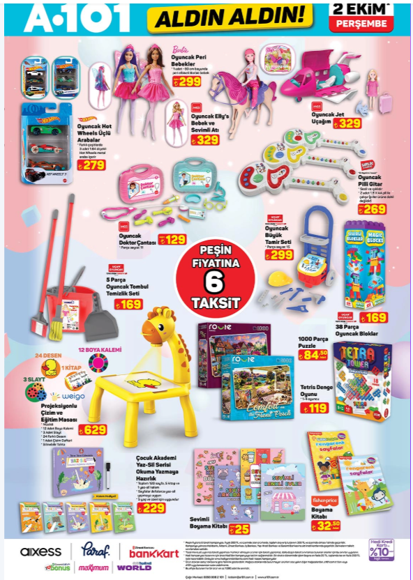 Çocuklara özel oyuncaklar da bu hafta kataloğun en renkli kısmını oluşturuyor. Barbie bebekler, oyuncak arabalar, doktor setleri, müzik aletleri ve puzzle çeşitleri çocukların ilgisini çekecek. Ayrıca okul çağındaki çocuklara özel boyama kitapları, eğitim setleri ve masa sandalye takımları da yer alıyor.