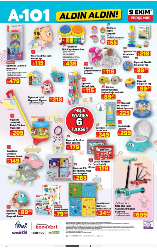 A101’in 9 Ekim 2025 Perşembe aktüel kataloğu, aileler ve yeni bebek bekleyen çiftler için özellikle avantajlı seçeneklerle dolu. Bebek ürünlerinden beyaz eşyaya, kişisel bakımdan ev gereçlerine kadar geniş bir yelpazede sunulan bu fırsatlar, A101’in müşterilerine kaliteli ürünleri uygun fiyatlarla sunma taahhüdünü bir kez daha gösteriyor. 9 Ekim Perşembe günü geçerli olan bu kampanyaları kaçırmamak için A101 mağazalarını ziyaret edebilir veya A101 internet sitesinden online alışveriş yapabilirsiniz.